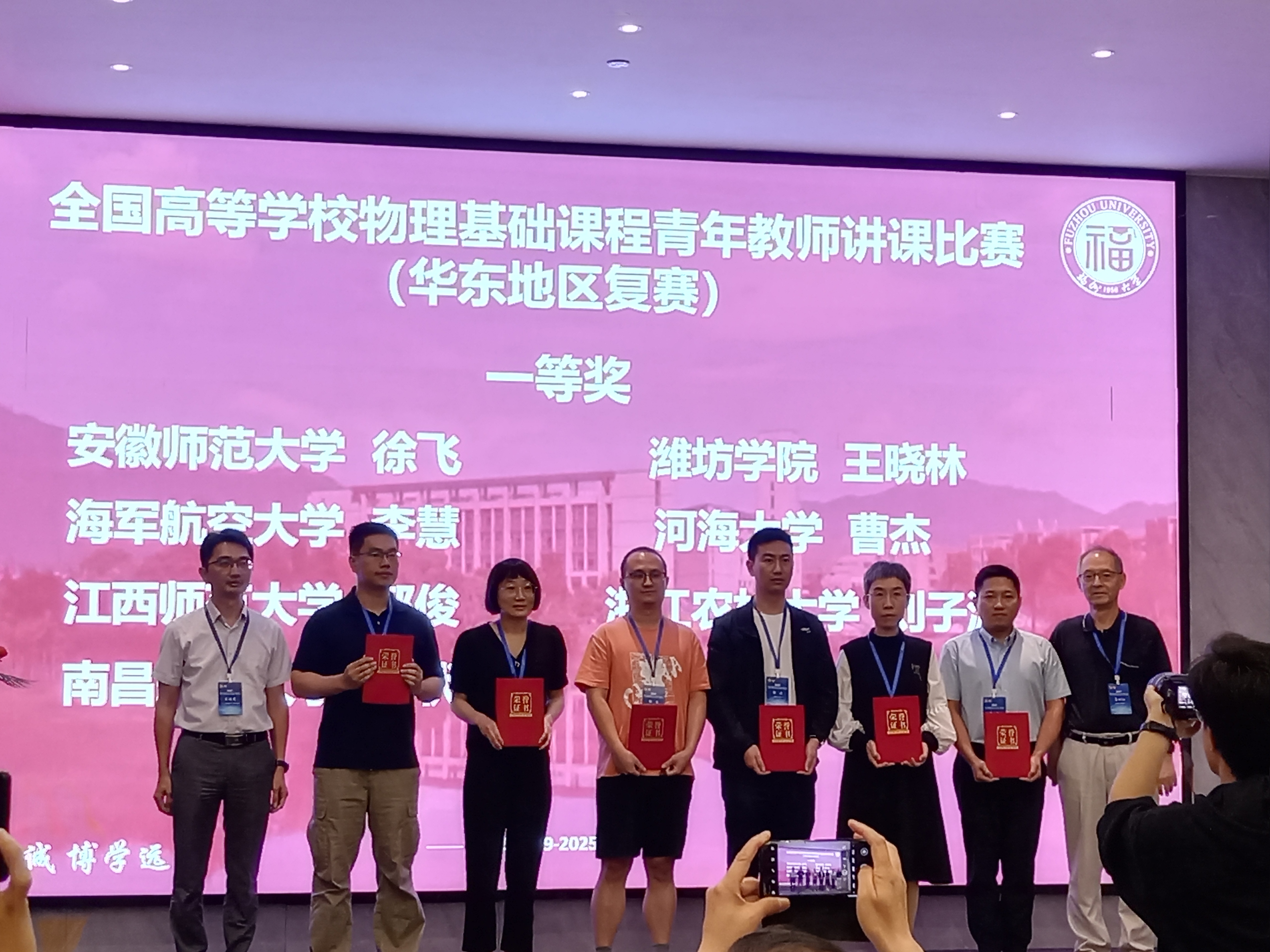 5月29日-6月2日,2025年全国高等学校物理基础课程青年教师讲课比赛华东地区复赛在福州大学成功举办,我校bet36365路检测中心青年教师徐飞继安徽省初赛之后再次取得突破,荣获华东地区复赛一等奖。