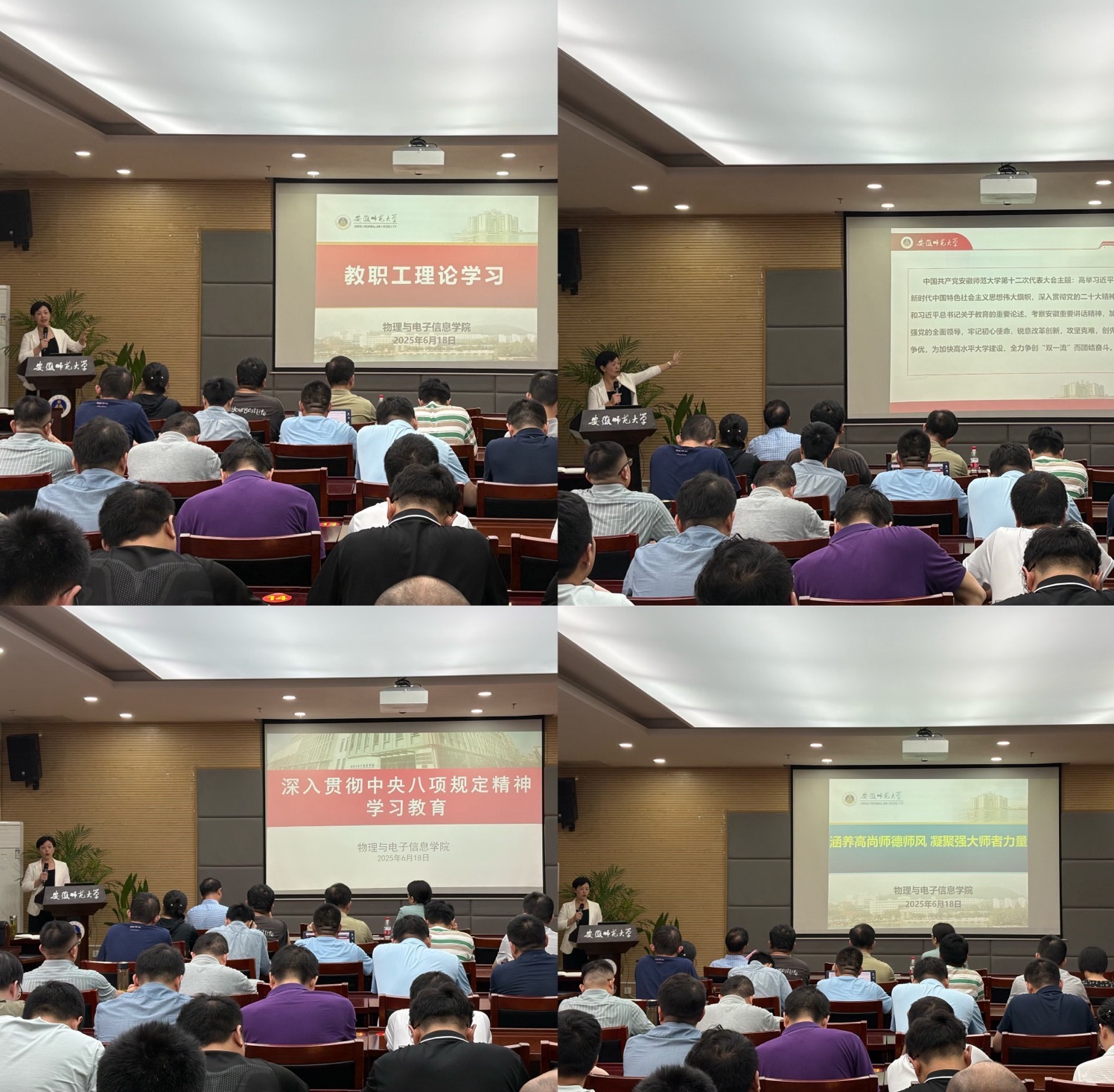 会上,宋静领学了习近平总书记在上海和河南考察时的重要讲话、致复旦大学建校120周年的贺信和对精神文明建设工作作出的重要指示精神,传达了中央层面深入贯彻中央八项规定精神学习教育工作专班、中央纪委办公厅公开通报的党员干部违规吃喝严重违反中央八项规定精神典型问题,介绍了学校第十二次党代会胜利召开相关情况,领学了学校第十二次党代会报告等会议和文件精神,结合毕业季和开学季可能会出现的问题开展了涵养师德师风教育。
