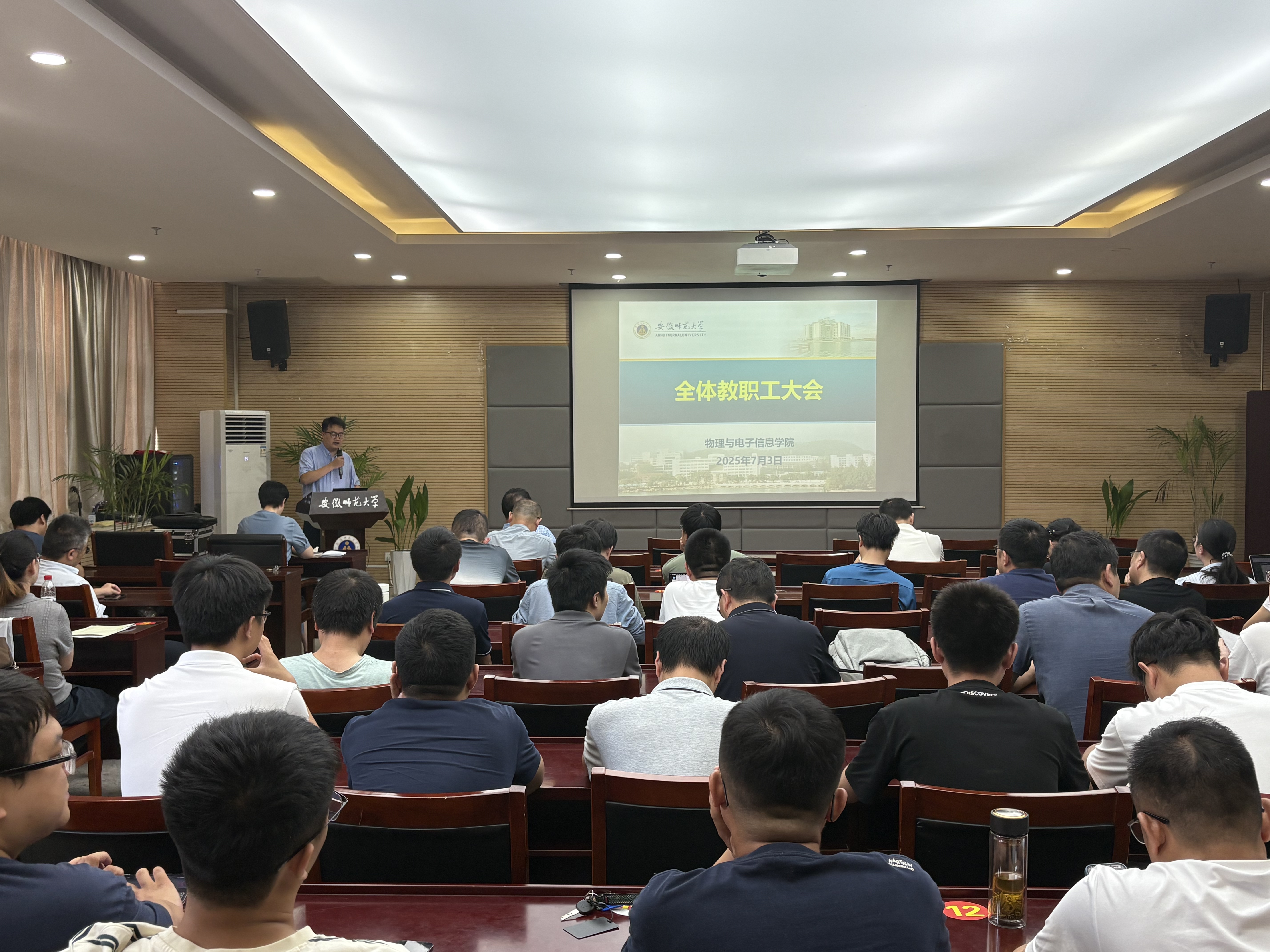 7月3日,bet36365路检测中心在物理楼304会议室召开全院教职工大会,传达学习学校第十二次党代会精神,总结本学期学院重点工作,部署暑期相关工作。学院党委书记宋静主持会议,学院全体教职工参会。