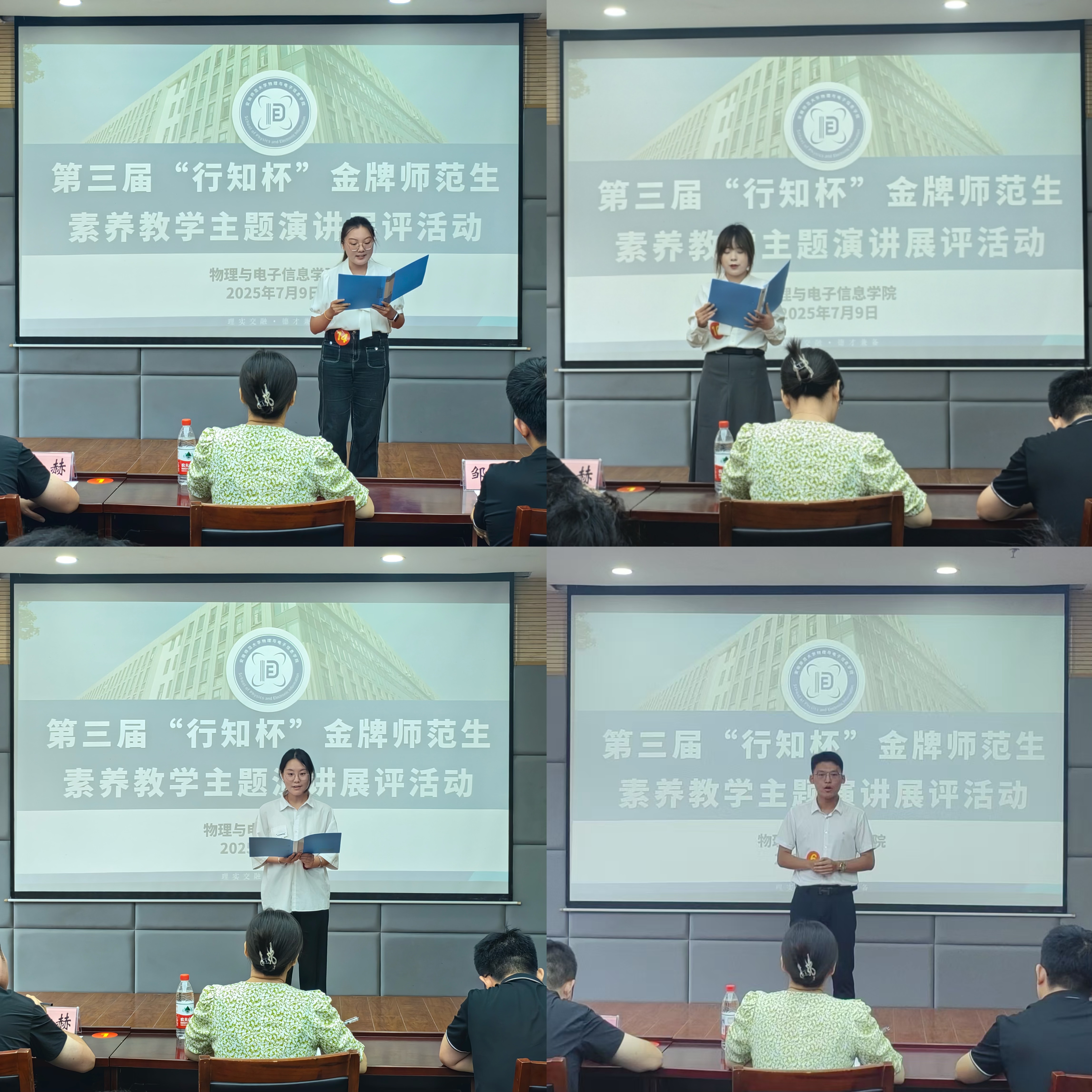 本次比赛分成教案展评、模拟授课、板书展评、主题演讲四个环节。参赛选手们精心准备、认真打磨,每一份条理清晰、书写工整的板书和教案,每一节声情并茂、精心设计的模拟授课,每一场激动人心的教师梦演讲,都展现出物电学子在本次暑期小学期实践中的丰富收获与深刻体会。比赛现场气氛热烈,以赛促学,赛中互鉴,展现了物电学子的风采。