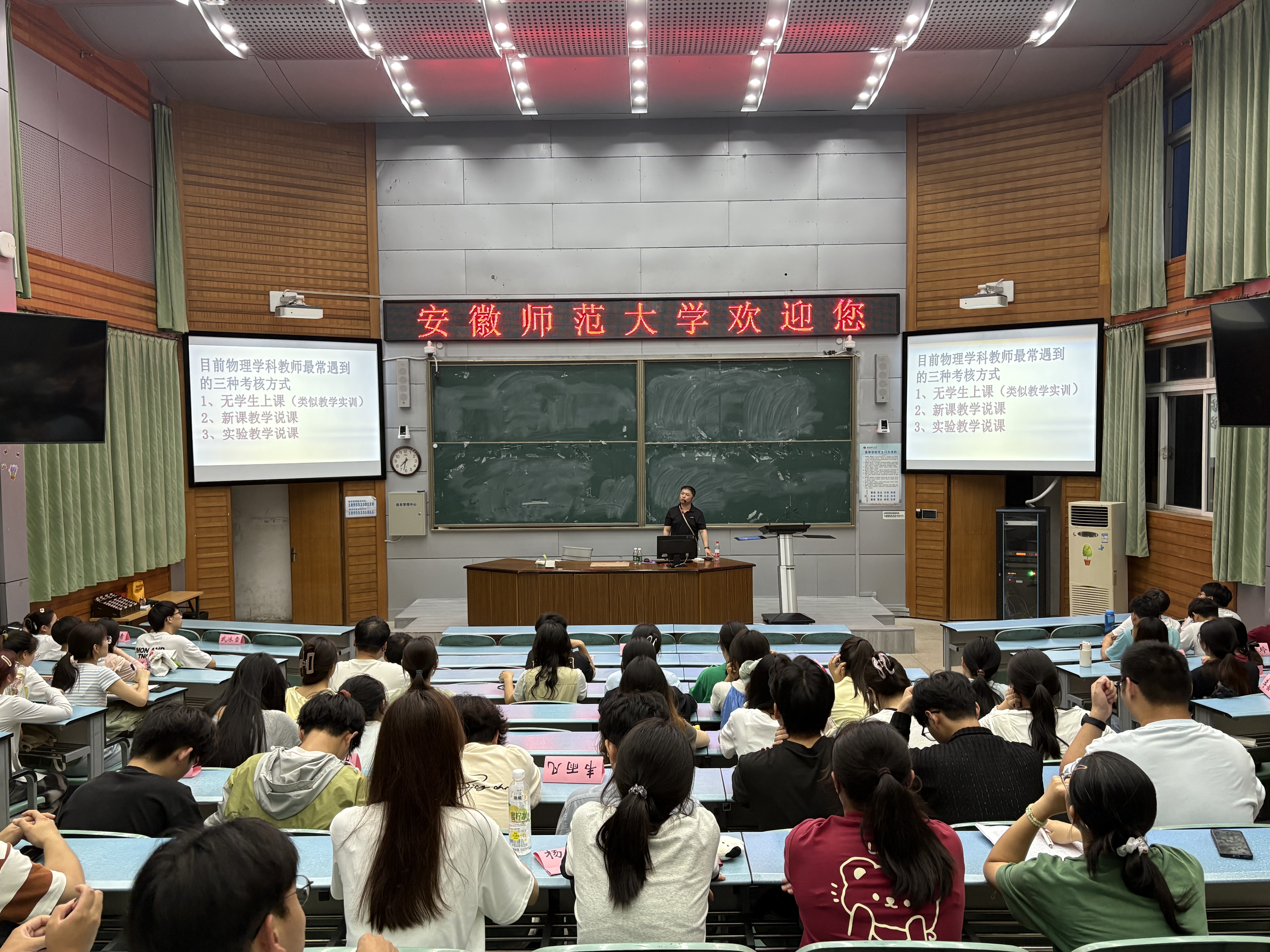 为深入推进“物理学基础教育振兴行动计划”,进一步提升师范生教育教学能力,7月2日-23日,bet36365路检测中心在花津校区2010105教室举办“名师面对面”系列讲座,邀请滁州实验中学校长胡忠国、中国物理奥赛队总教练宋峰、合肥一中淝河校区执行副校长蔡胜国、马鞍山二中物理组教研组长黄浩等老师面向学院全体小学期参训学员作专题辅导报告。