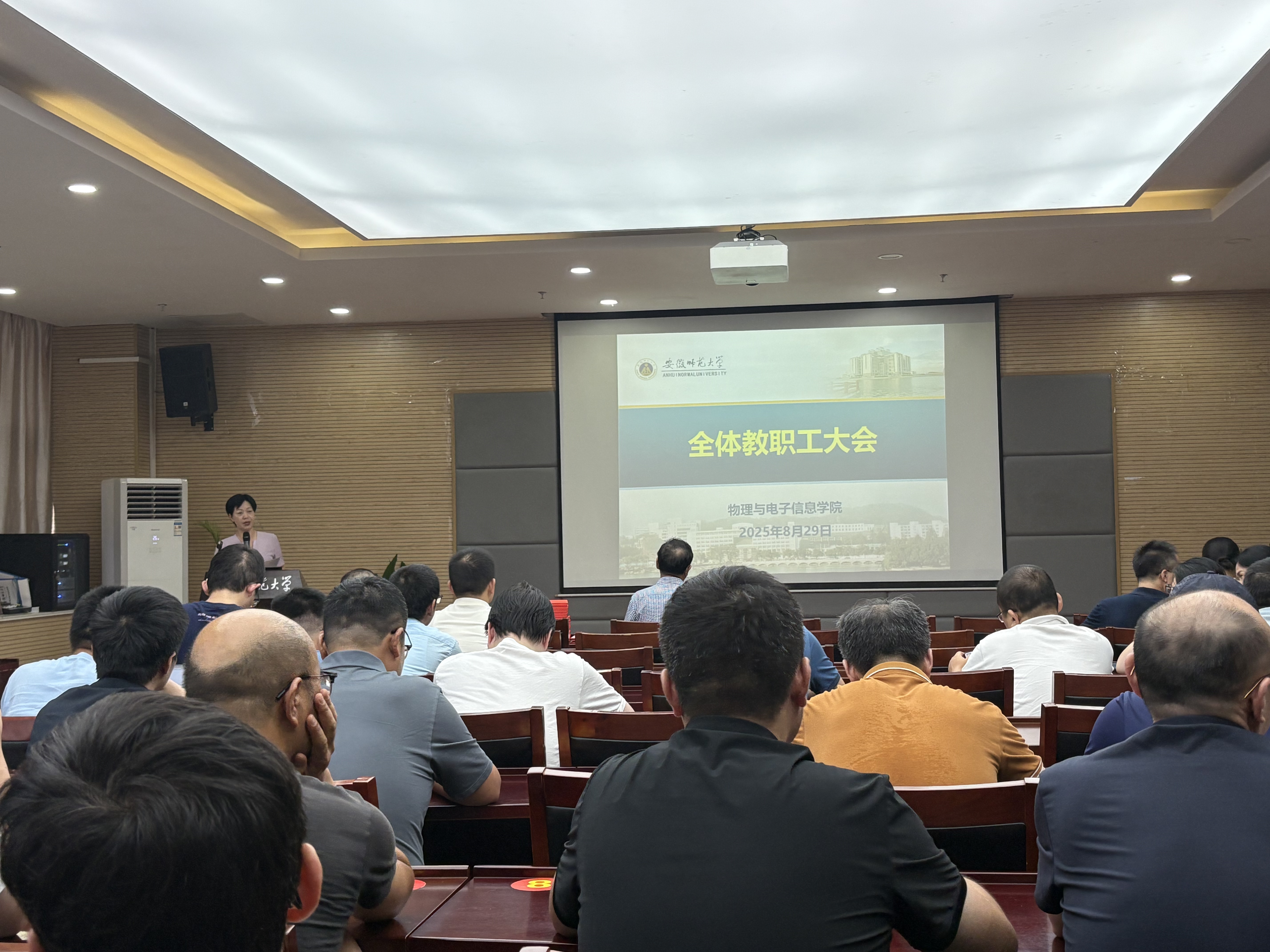 8月29日,bet36365路检测中心在物理楼304会议室召开教职工大会暨新学期工作布置会,开展政治理论学习,总结假期工作,布置新学期工作。学院全体教职工参加会议。学院党委书记宋静主持会议。