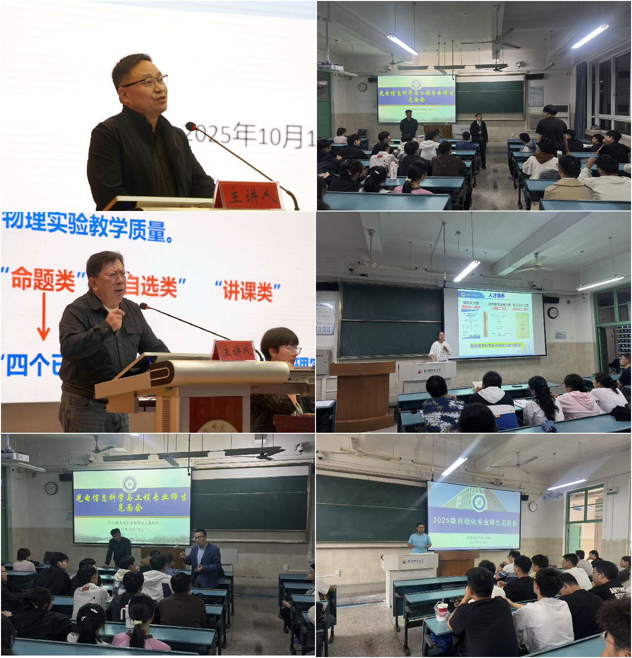见面会上,各专业负责人以专业建设发展情况为主线,围绕历史沿革、师资力量、培养方案、发展前景等,为新生搭建起专业认知框架,帮助新生初步建立起对自身专业的认知,了解自己所学专业的基本内涵与人才培养目标。面对大学与中学截然不同的学习内容与学习模式,各专业老师不约而同地强调了在大学阶段“主动”的重要性,教育新生不仅要主动自主学习,主动搜集各类学习资源和拓展性知识,更要学会主动请教老师,主动参与实践,主动开展深度研究性学习。同时,老师们也勉励新生要逐步适应理工科专业课程多、学习任务重、进度快、难度大等特点,尽早对大学生涯作出科学合理的规划安排。交流互动环节中,针对同学们提出的关于深造方向、大学规划、心理调整、学习方法、科研实践竞赛以及考研保研等方面的问题,与会教师一一进行了耐心解答,老师们的讲解与互动帮助同学们增强了对自身专业的认同感以及对未来学习的信心。会上,各专业老师均寄语新生同学树立远大志向,心怀家国情怀,与时代同频共振,将个人理想融入国家发展,在青春岁月中砥砺奋斗、追求卓越,书写精彩人生。