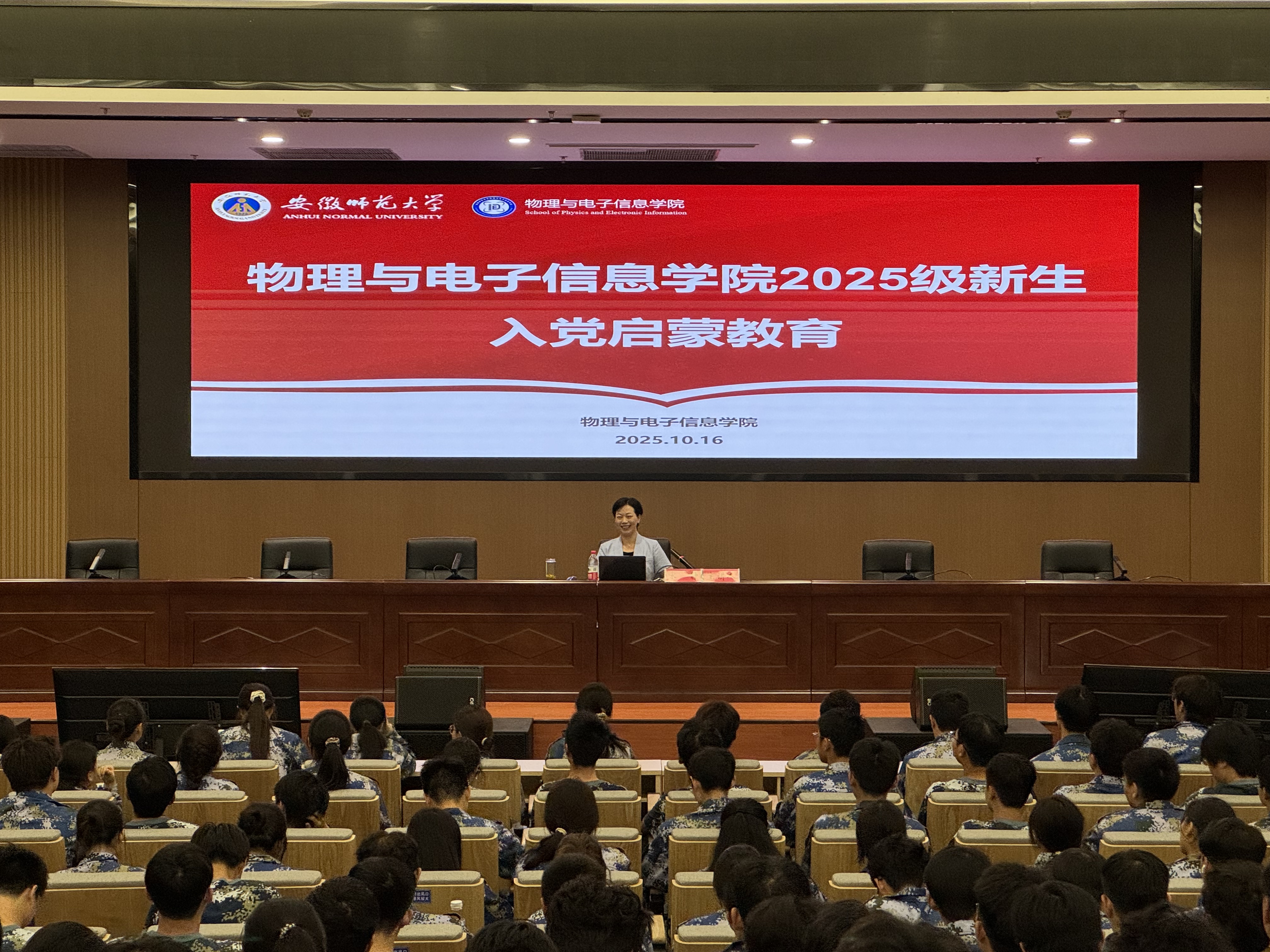 近日,bet36365路检测中心党委在理科大楼报告厅和文典楼西侧报告厅分两场举办2025级新生入党启蒙教育活动。学院2025级全体新生共679人参加。学院党委书记宋静、党委副书记凌从祥分别担任主讲人。