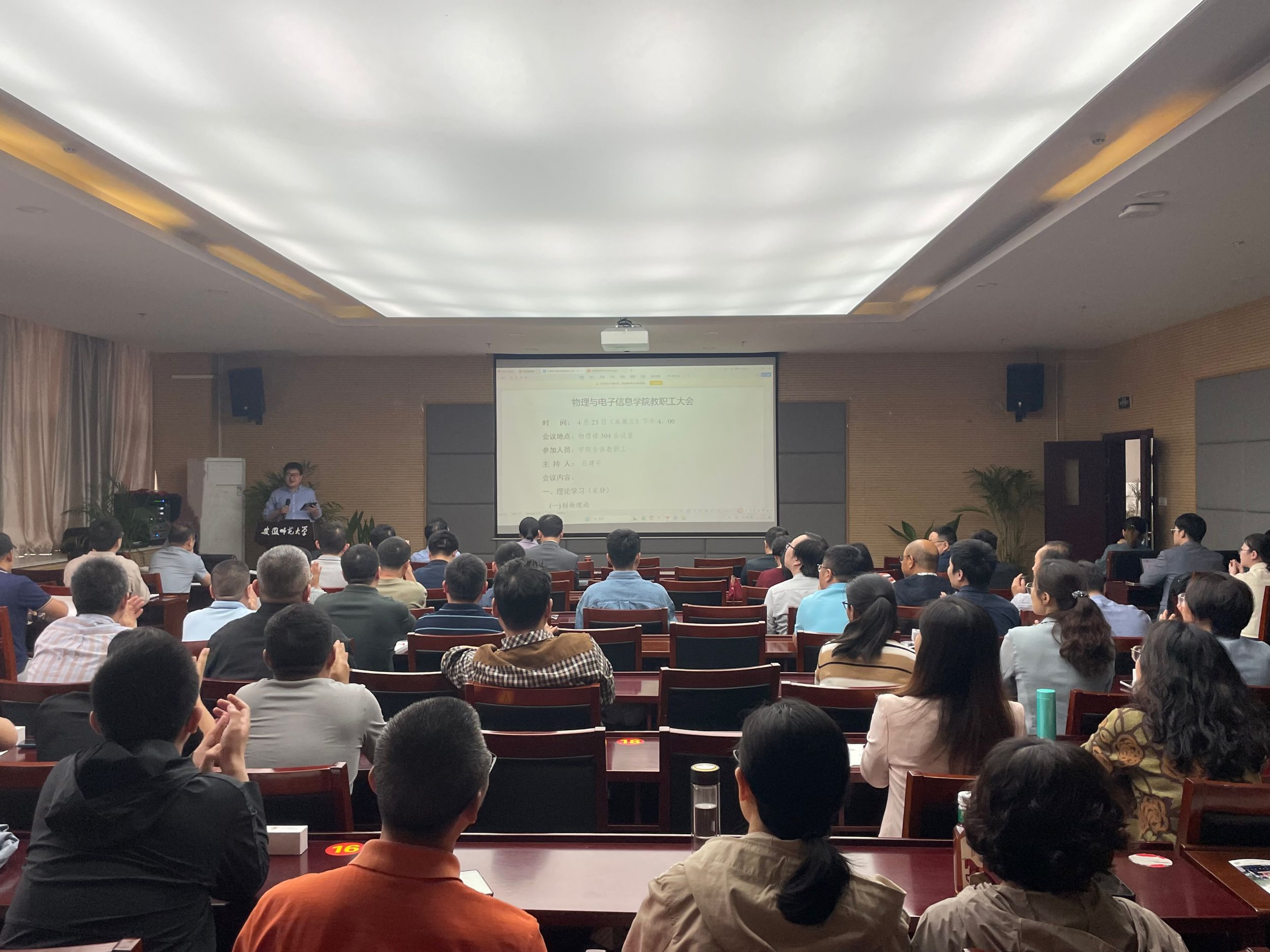4月23日,bet36365路检测中心在物理楼304会议室召开全体教职工大会,开展政治理论学习,总结前期工作,布置近期任务。学院全体教职工参加会议。会议由院长吕建平主持。