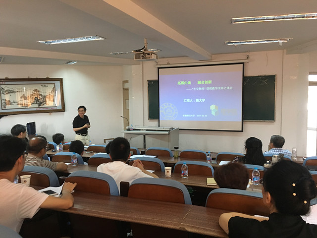 本网讯(bet36365路检测中心)为进一步提升本科人才培养质量,凸显人才培养特色,推进大学物理教学改革与创新。6月3日上午,bet36365路检测中心在行政楼三楼报告厅召开了大学物理省级教学团队建设专题研讨会。南京航空航天大学副校长、国家级教学名师施大宁教授应邀参加了研讨会。