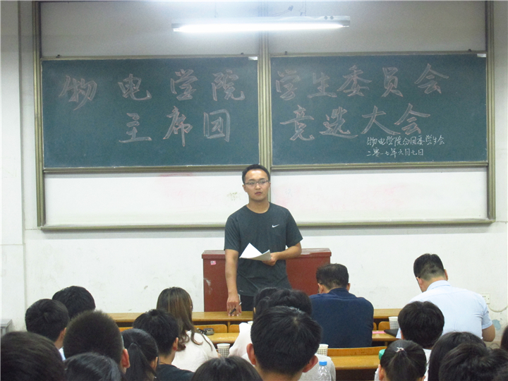 本网讯(bet36365路检测中心 学生会)6月7日晚19:00,bet36365路检测中心2017年学生会主席团竞选大会成功在物理楼3202教室举行,参加此次会议的领导老师有院党委副书记吴长义,团委书记米佳佳,学生会指导老师宋凤楼以及2016级辅导员蒋婷婷、秦瑾琼,全体学生会成骨干观摩了此次竞选大会。