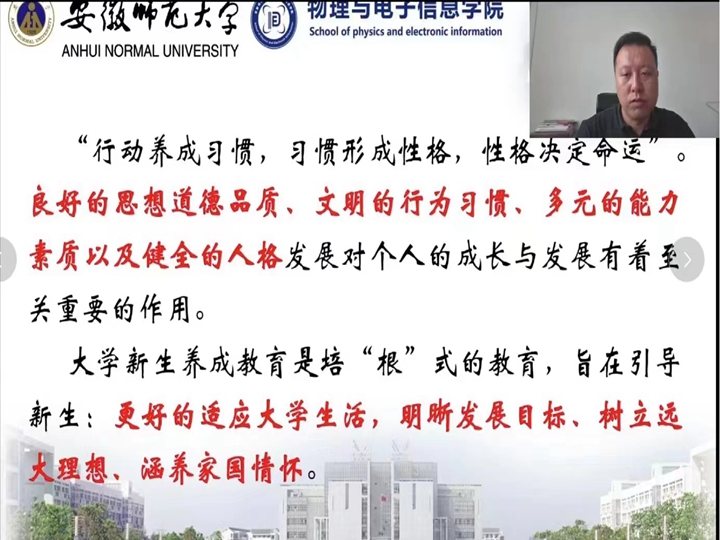 “行动养成习惯,习惯形成性格,性格决定命运”,大学新生养成教育是培“根”式的教育。为了引导新生更好的适应大学生活,明晰发展目标、树立远大理想、涵养家国情怀,bet36365路检测中心党委副书记黄友生依托新媒体平台,以“新生养成教育“为主题,提出新生养成教育的十条主线,为全体2022级新生开展了一堂别开生面的大学“先修课”。