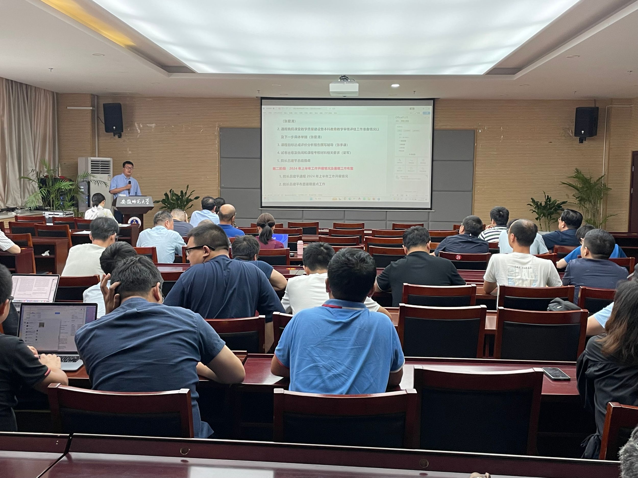 院长吕建平详细通报2024年上半年学院教学、科研、学生工作等开展情况和相关成果,并就党纪学习教育、本科教育教学审核评估、学科平台重组、暑期小学期、科研项目申报、学科竞赛、暑期社会实践、留校学生安全等工作进行布置。行政副院长张其芳就暑期实验室安全、假期教职工出国境管理规定等工作逐一强调。
